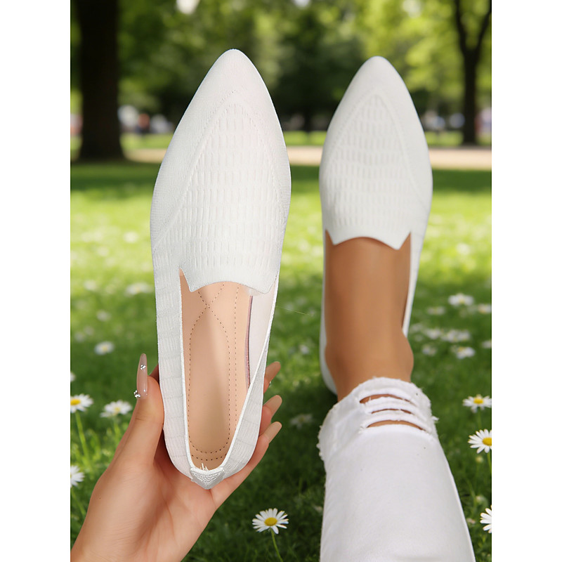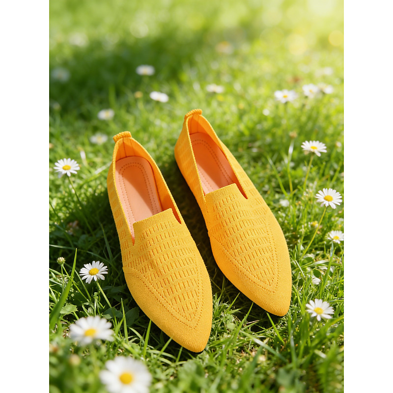 Women's Blue Textured Pointed Toe Flyknit Shoes with V-Shaped Design, Chic Casual Slip-Ons for Work, Shopping, Travel, Daily Wear and Spring Outings