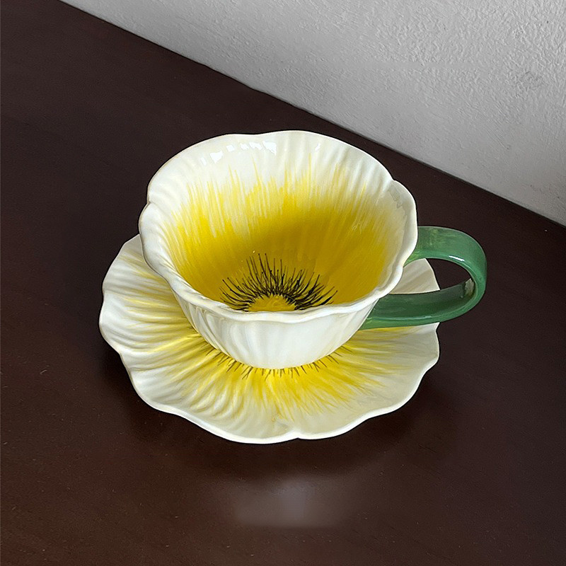 Floral Ceramic Coffee Cup Saucer, Creative Hand-Painted Underglaze French Vintage Petal Design, Afternoon Tea Set, Elegant Gift for Friends Family