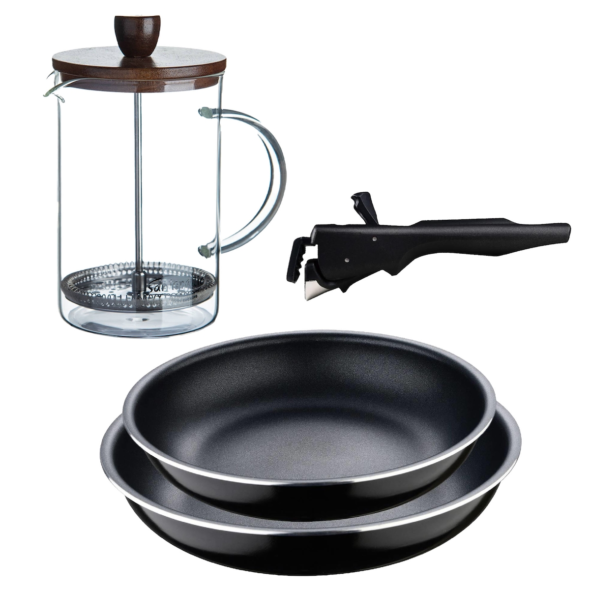 BERGNER - Set aus 2 Pfannen Ø22/26cm gepresstes Aluminium mit abnehmbarem Griff mit French Press Kaffeebereiter Borosilikatglas 15,8×10×18,8cm