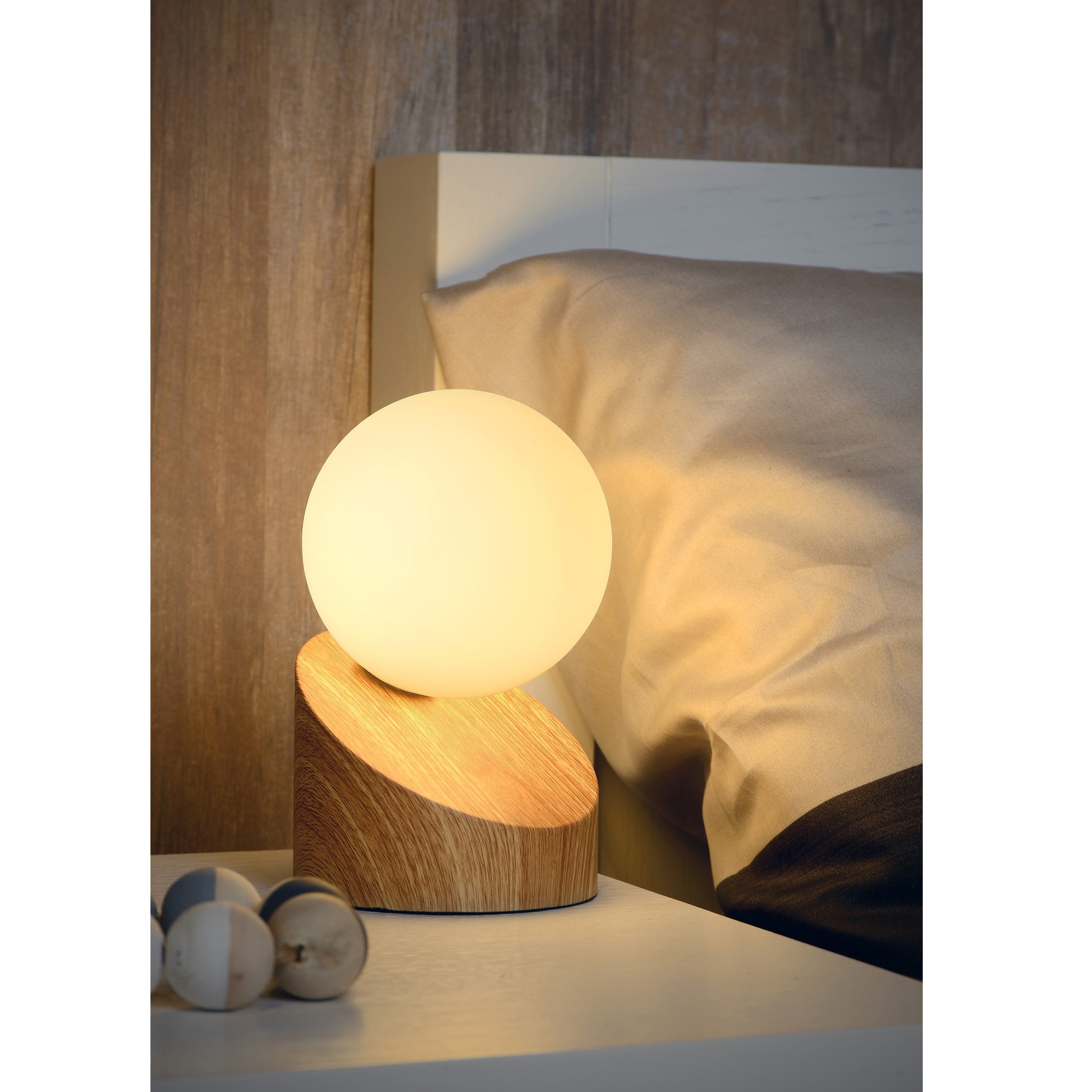 Lucide Len - lampe à poser - 16 cm - bois clair et opale
