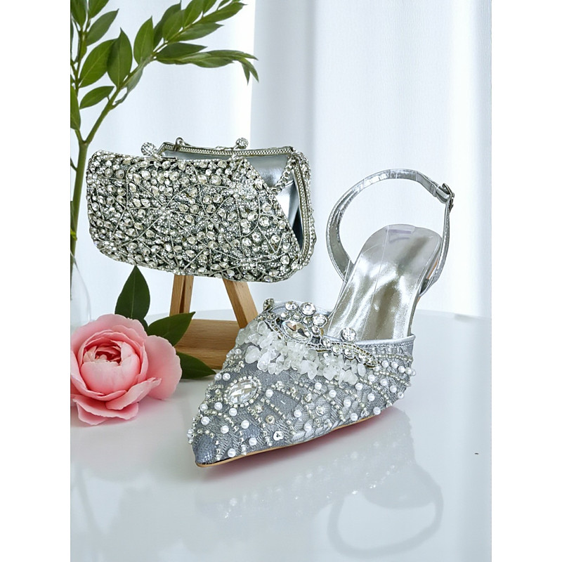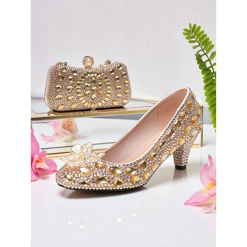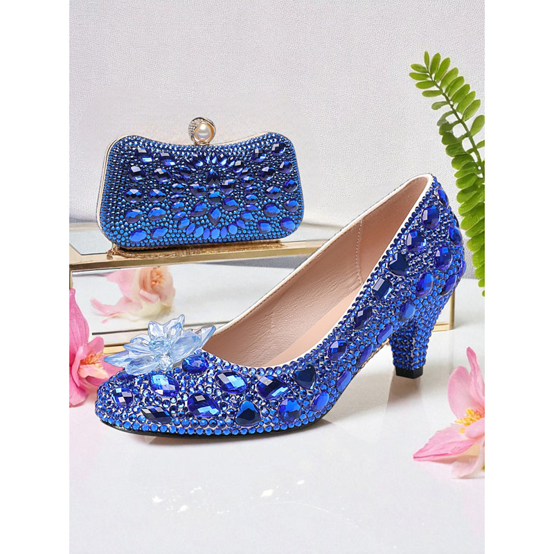 Women's Rhinestone Heels and Clutch Bag Set with Multicolor Crystal Embellishments - Elegant Matching Shoes and Purse for Formal Events and Cocktail Parties