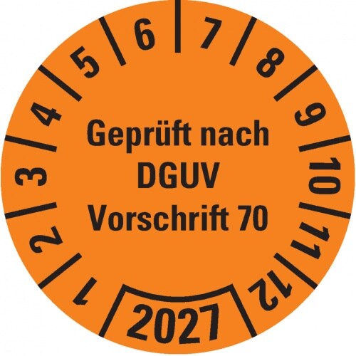 Dreifke® Prüfplakette Geprüft n. DGUV Vorschrift 70,2027,orange,Dokufolie,Ø30mm,18/BOG