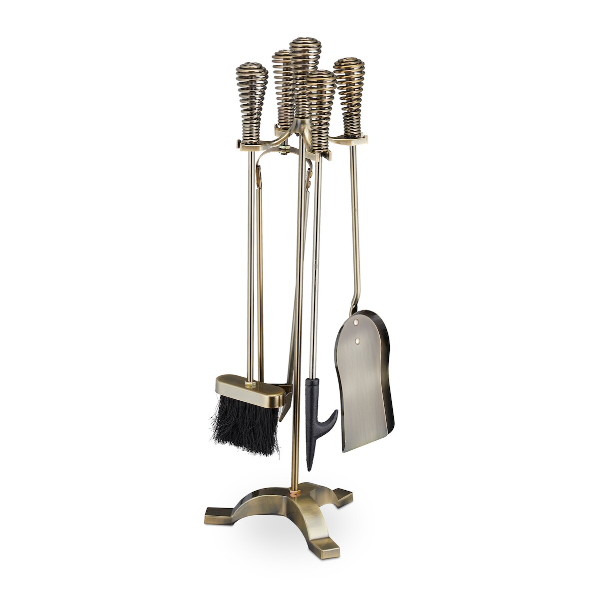 Relaxdays Kaminbesteck, 5-teiliges Set, Schürhaken, Ascheschaufel, Besen, Zange & Ständer, Kamingarnitur, Stahl, gold