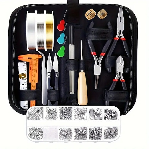 Schmuckherstellungsset mit Zange, Perlendraht, Pinzette, Schere und Zubehör, DIY-Schmuckwerkzeugset zum Perlen, Drahtwickeln, Reparieren von Halsketten und Armbändern