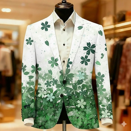 San Patrizio Per uomo Quadrifoglio Giacca blazer Cappotto Confortevole Traspirante Artistico Casual Quotidiano Abbigliamento da sera Festival Stampa 3D Bottoni Multi-tasche Tutte le stagioni