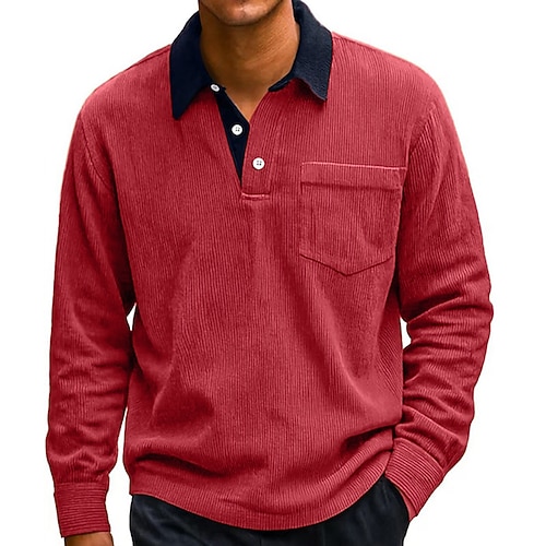 Per uomo Camicia di Velluto a Coste Maglia da golf Casuale Lavoro Bavero Manica Lunga Essenziale Moderno Blocco di colori Bottoni Primavera Autunno Vestibilità regolare Blu Nero Bianco Rosso Blu