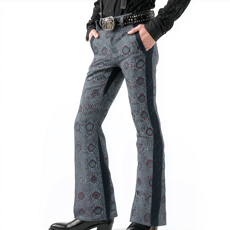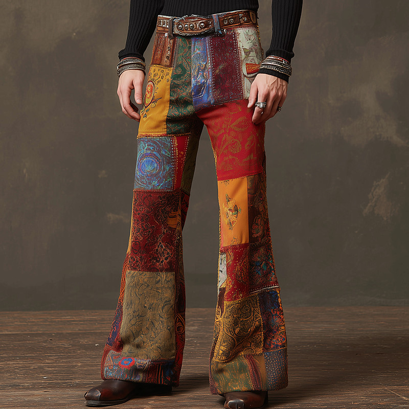 Men's Geometric Color Block Patchwork Trousers Disco Pants 60s 70s Bell Bottoms Mid Waist Bohemian Vintage Retro Outdoor Party Casual Side Pockets Flared Leg Pants Trousers Spring Fall 3D Print Blue
