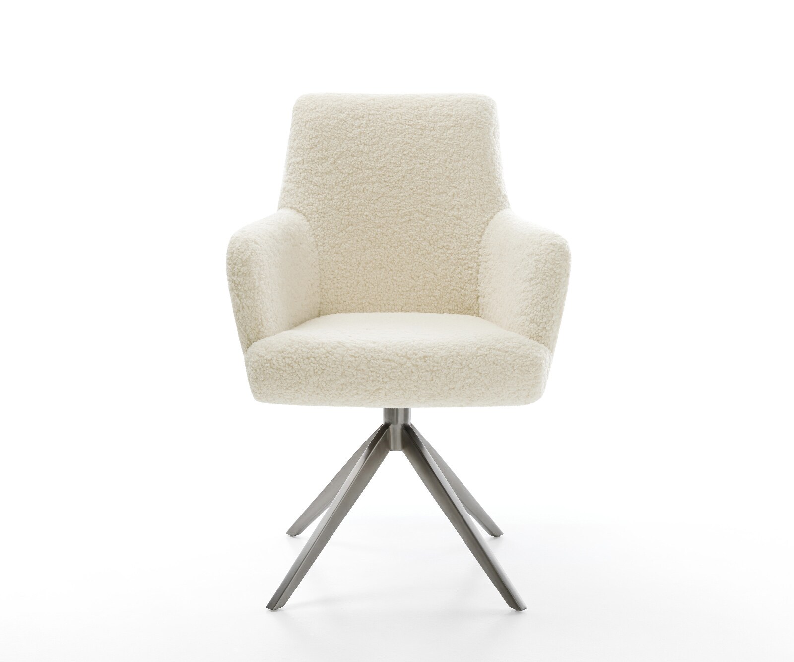 DELIFE Draaistoel Keila-Flex met armleuning bouclé zacht beige kruisframe breed afwerking met titanium 360° draaibaar rocker-functie