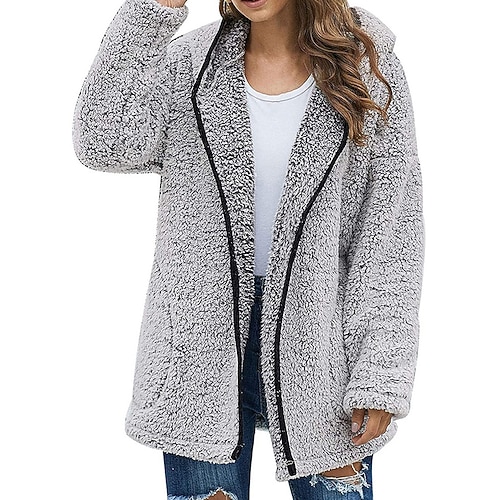 Per donna Cappotto Teddy Giacca con Cappuccio Caldo Confortevole Cerniera Casual Semplice Vacanza Streetwear Uscire Weekend Regolare Felpa con Cappuccio Vestibilità comoda Manica Lunga Capispalla