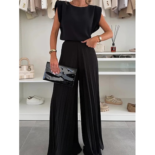 Per donna Set di Pantaloni Bolero Top Senza Maniche Girocollo Semplice Arricciato Moda Streetwear Quotidiano All'aperto Nero Bianco Estate Vestibilità comoda