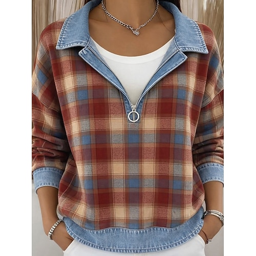 Per donna Giacca Casual Giacca con Cappuccio Caldo Confortevole Cerniera Tasca Bottoni Casual Plaid Casuale Casa All'aperto Vacanza Corto Con Cappuccio Vestibilità comoda Manica Lunga Capispalla