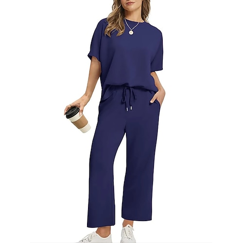 Per donna Set di Pantaloni Bolero Top Manica Corta Girocollo Semplice Coulisse Patchwork Moda Streetwear Casuale Quotidiano All'aperto Nero Verde militare Rosa scuro Estate Vestibilità comoda