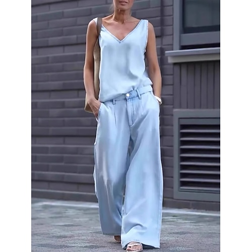 Per donna Set di Pantaloni Bolero Top Senza Maniche Scollo a V Semplice Elegante Moda Streetwear Quotidiano Vacanza Ferie Azzurro Estate Vestibilità comoda