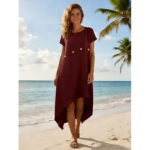 Per donna Abito Midi Abito a trapezio Abito Estivo Casual Vestibilità comoda Semplice Manica Corta Scollo a V Blu Bianco Rosso Marrone Estate Primavera