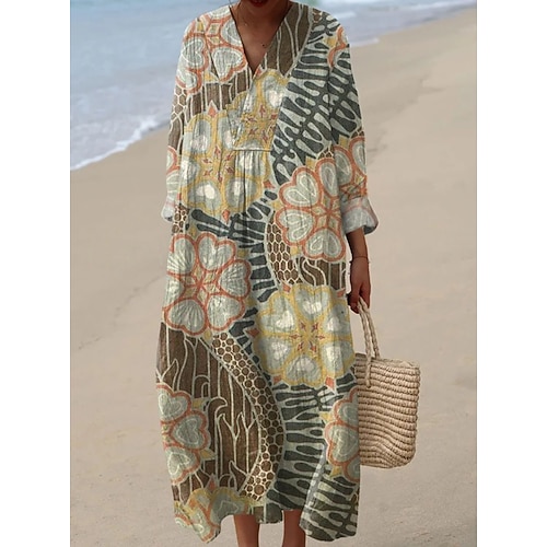 Per donna Abito Midi Abito a Tubino Vacanza Casual Uscire Vestibilità comoda Floreale Grafico Astratto Manica Lunga Scollo a V Blu Marrone chiaro Arancione Estate Primavera
