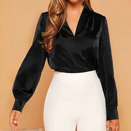 Per donna Camicia Blusa Semplice Elegante Vintage Casual Manica Lunga Scollo a V Top Regolari Quotidiano Ferie Uscire Arricciato Nero Vino Verde militare Blu Marrone Estate Primavera Autunno