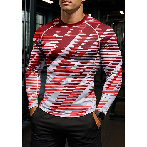 Per uomo Maglia a compressione Maglia da corsa Stampa 3D Manica Lunga Livello Base Geometrico Asciugatura Rapida Compressione Elasticizzato Traspirante Allenamento in Palestra Allenamento attivo