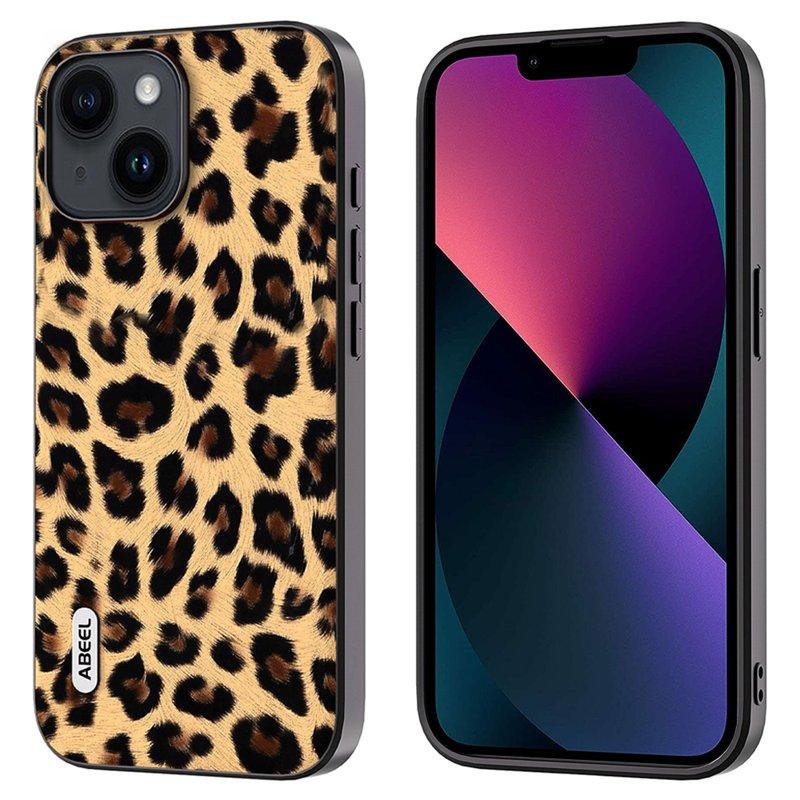 ABEEL Mobilskal till iPhone 13 Leopard Textur PU Läder Champagne Guld