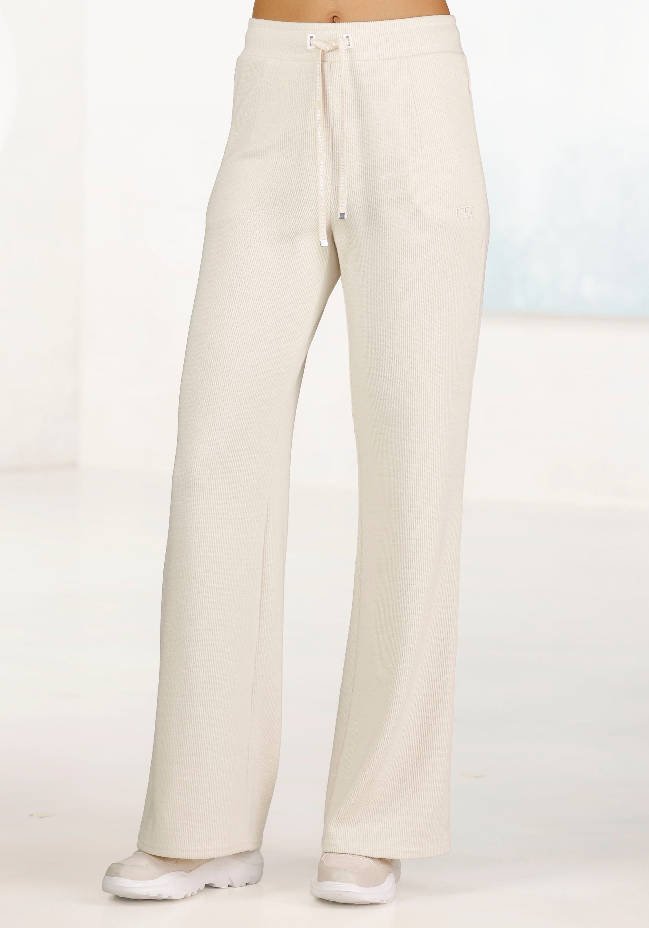 Loungepants FRENCH CONNECTION, Damen, Gr. 40/42, N-Gr, beige, Obermaterial: 78% Polyester, 19% Viskose, 3% Elasthan, unifarben, Modisch, bequem lang, Hosen, in gerippter Strickoptik