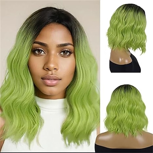 Parrucca di Carnevale Verde Ambra Riccio Ondulato Corto Parrucca sintetica da festival Martedì grasso Parata Capelli per costumi da cosplay per Da donna