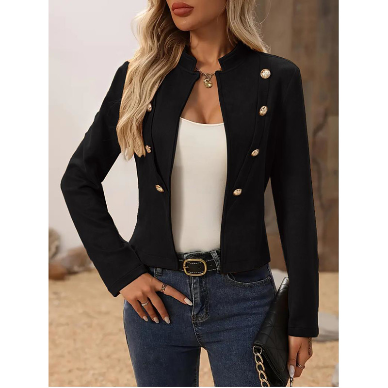 Women's Faux Leather Jacket Jacket Office Button Solid Color Vintage Regular Fit Outerwear Long Sleeve Spring Black S