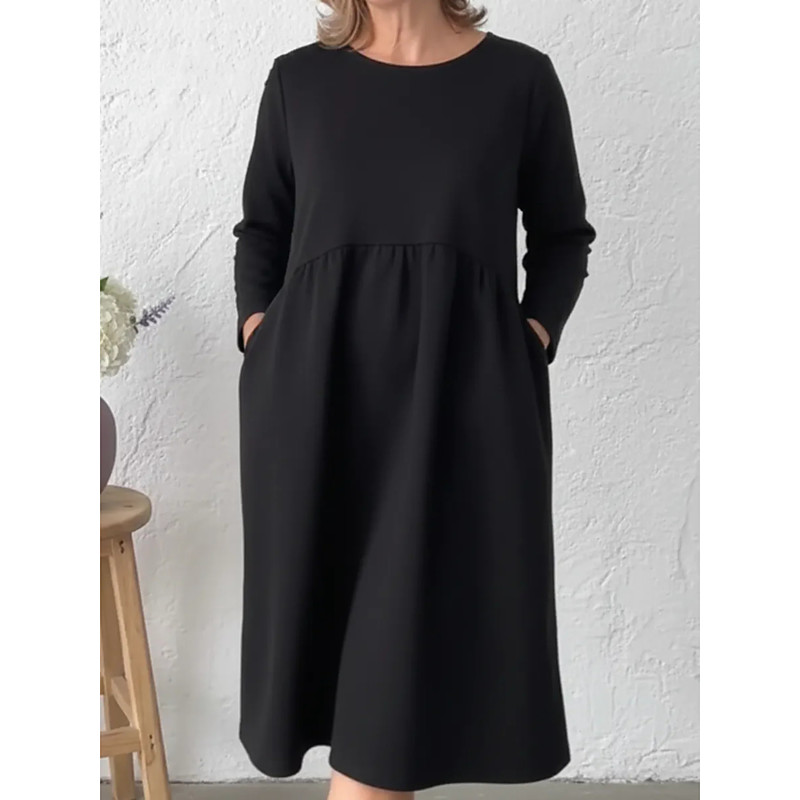 Women's Midi Dress Pleated Dress Casual Boho Daily Date Spring Dress Regular Fit Plain Long Sleeve Crew Neck Navy Black Dark Red Yellow Summer Spring Fall