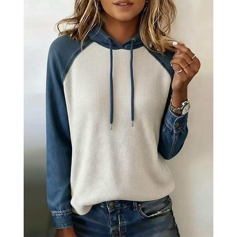 Women's Pullover Hoodie Sweatshirt Plain Casual Long Sleeve Hooded Regular Tops Street Dailywear Patchwork White Spring Fall Winter