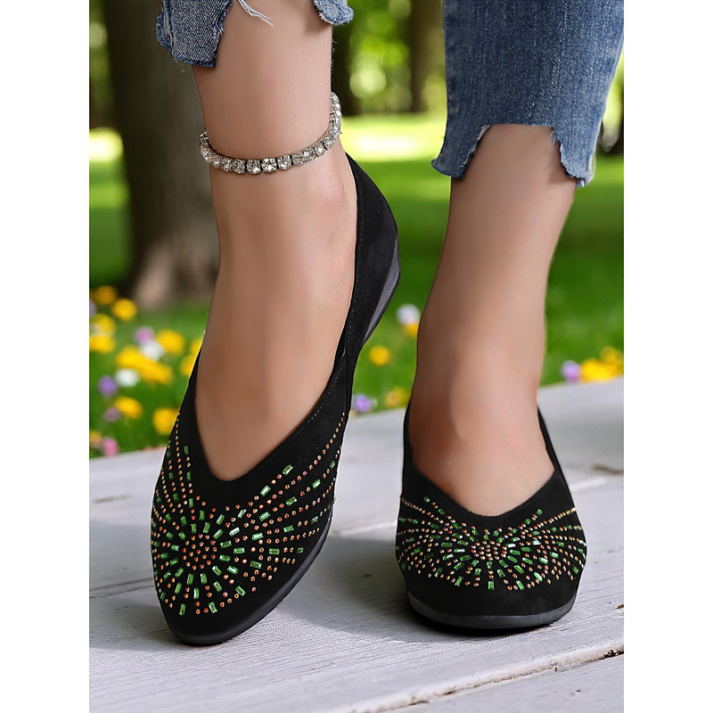 Women's Rhinestone Wedge Flats – Sparkly Comfort Shoes for Oktoberfest, Beer Garden Parties, and Festive Outdoor Events