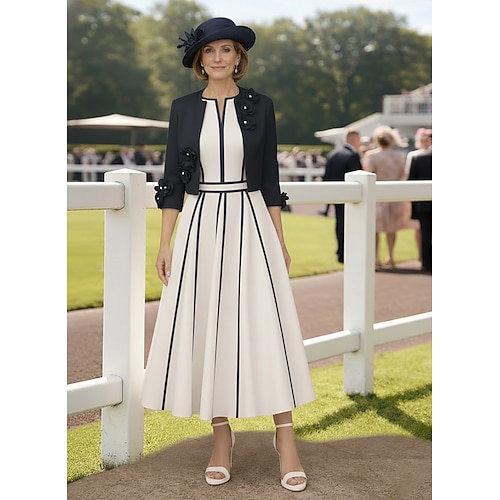 Due Pezzi Linea ad A Lunghezza alla caviglia Lunghezza Tè Abito da invitata a nozze Abito da cerimonia per signora Senza Maniche Manica 3/4 Scollo a Barca Elegante Semplice Casual Formale Ospite di