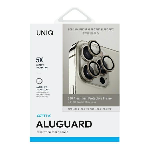 UNIQ iPhone 16 Pro/16 Pro Max Kameralinsskydd Härdat Glas Optix - Grå