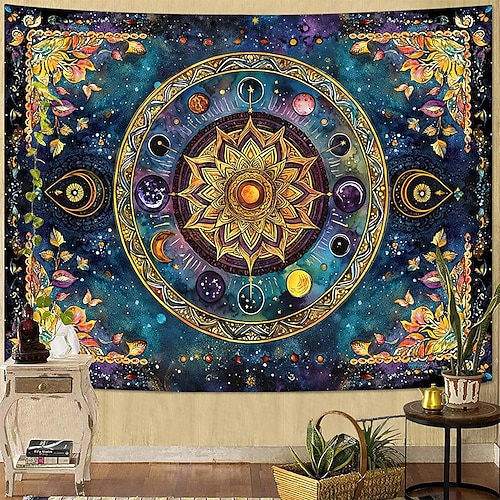 arazzo mandala celeste sole arazzo da parete zodiaco pianeti fasi lunari galassia cielo stellato arredamento boho per la stanza grande tessuto sfondo artistico