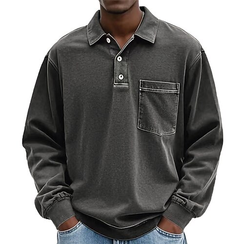 Per uomo Polo Maglia da golf Casuale Streetwear Bavero Manica Lunga Essenziale Moderno Semplice Tasca Bottoni Primavera Autunno Vestibilità regolare Blu Viola Nero Blu marino Fuschia Marrone Polo