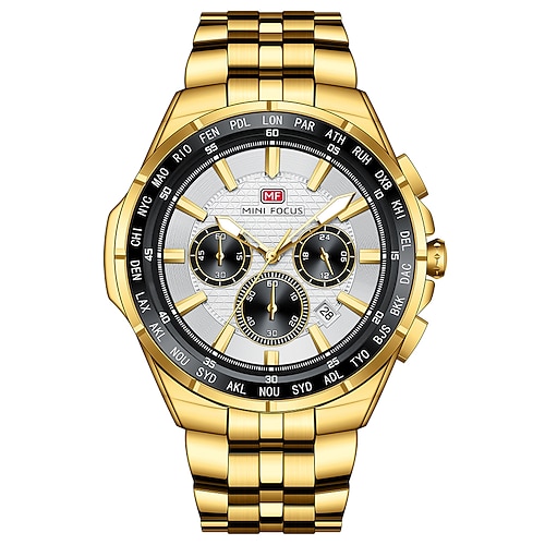 MINI FOCUS Da uomo Orologio al quarzo Minimalista Grande quadrante Moda Casual Calendario Impermeabile Ora mondiale Decorazione Acciaio Guarda