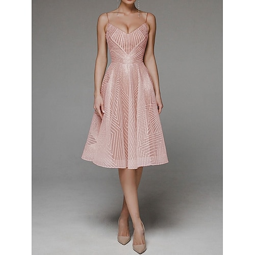 Per donna Abito al ginocchio Abito Bianco Vestito da Festa Abito Sottoveste Moda Caldo Moderno All'aperto Vacanza Uscire Vestibilità regolare Geometrico Senza Maniche Scollo a V Blu Nero Bianco Rosa