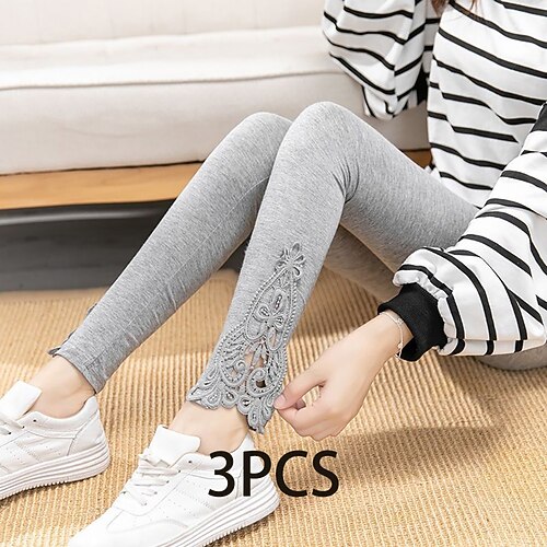 3 pezzi pantaloncini capri da donna leggings leggings comodi vacanza moda costiera stile nonna lunghezza polpaccio tinta unita pizzo comfort elasticizzato vacanza formale strada bianco cenere nero