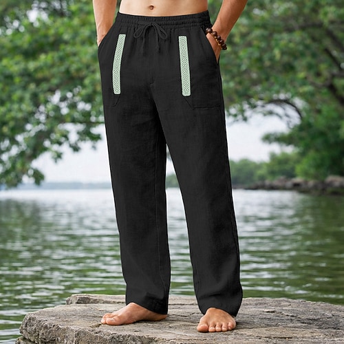 Per uomo Pantaloni di Lino Pantaloni Estivi Pantaloni da Spiaggia Coulisse Patchwork Gamba Dritta Semplice Comodità Traspirante Lunghezza intera Casuale Quotidiano Ferie Vacanza Moda Nero Bianco