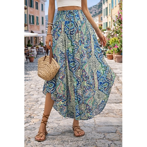 Per donna Gonna da vacanza Elegante Bohemien Moda Casual Midi Vita media Gonne Grafico Paisley Coulisse Elastico in vita Orlo irregolare Inelastico Quotidiano Vacanza Blu Nero Bianco Giallo Estate