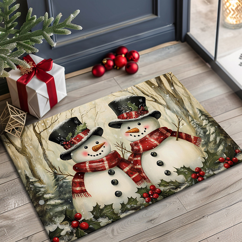 Christmas Decoration Doormat Xmas Snowman Couple Kitchen Mat Floor Mat Non-Slip Area Rug Oil Proof Rug Indoor Outdoor Mat Bedroom Decor Bathroom Mat Entrance Rug