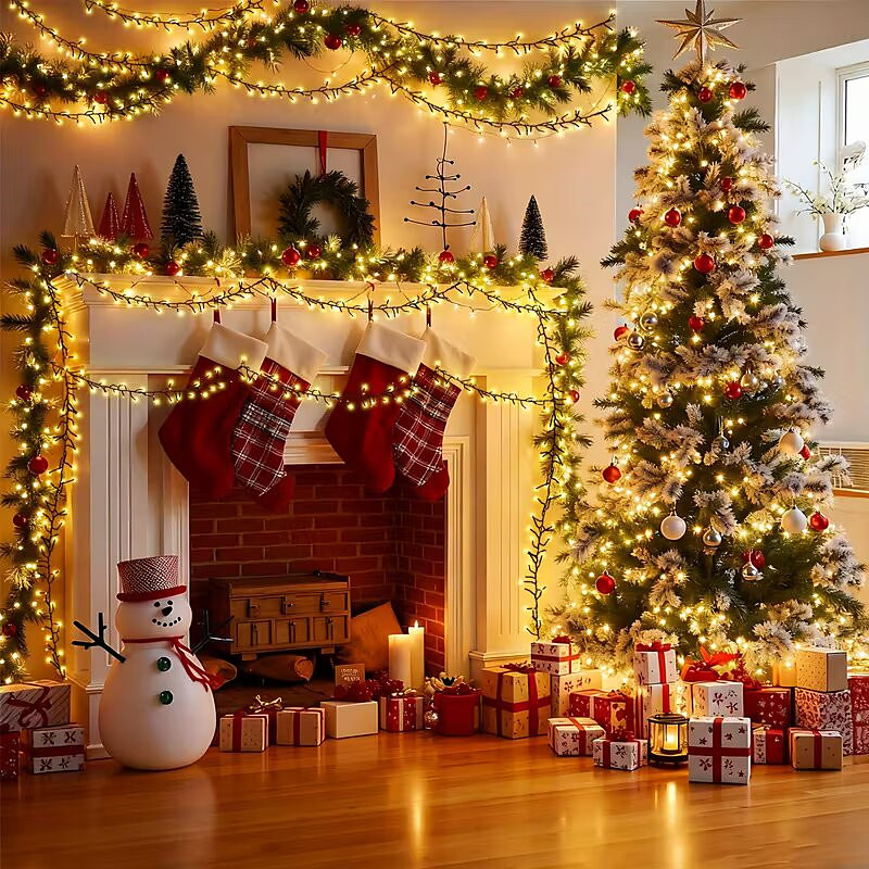 LED Twinkling Tree Lights Outdoor 10M 500LED Cluster Fairy Lights Warm White Firecracker String Lights 8 Twinkle Modes In Decorative Garland Light for Home Holiday Lighting DC31V EU US