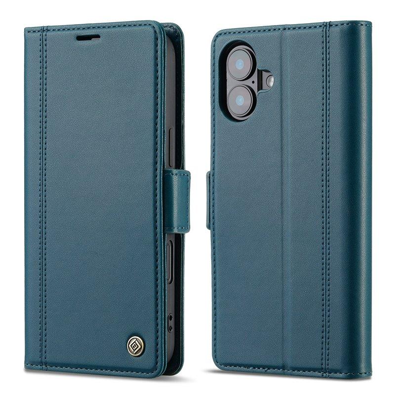 CASENEO iPhone 16 Plånboksfodral Magnetiskt RFID Blocker Konstläder - Blå