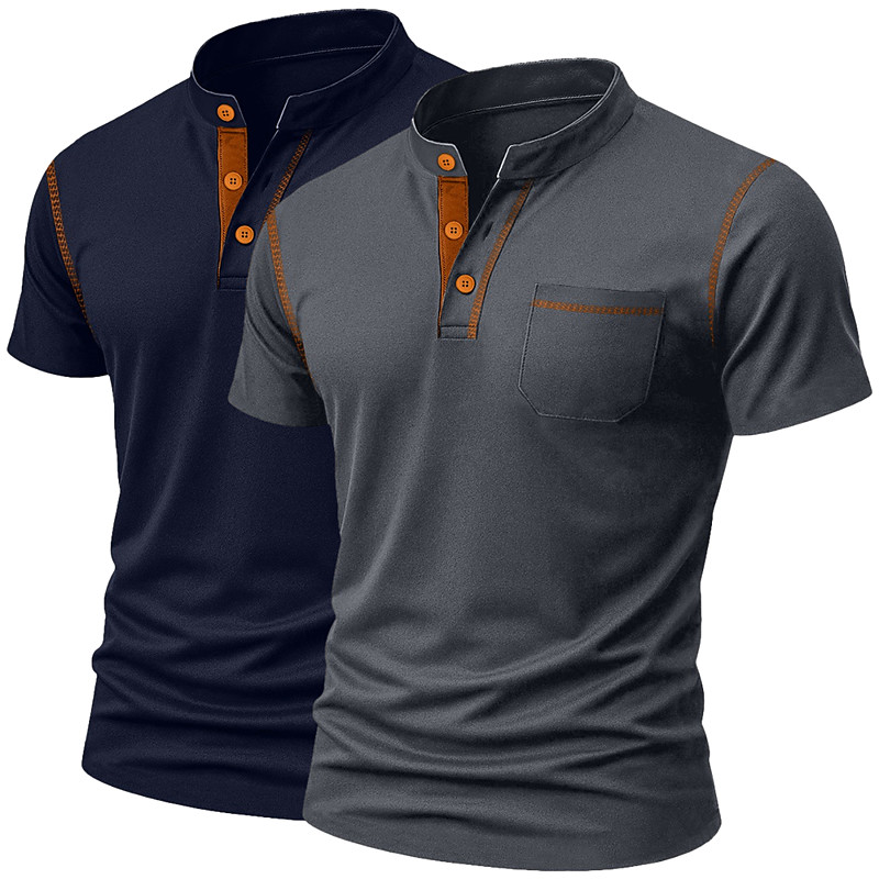 Men's Henley Shirt Tee Short Sleeve Solid Color Plain Solid Casual Pocket 2 Piece Buttons Henley Outdoor Casual Daily Summer Spring Fall All Seasons 1 2 3 Henley T-Shirt