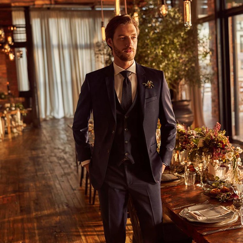 Men's Wedding Suits Notch Black Blue Solid Colored Slim Fit 3 Piece Single Breasted Two-buttons