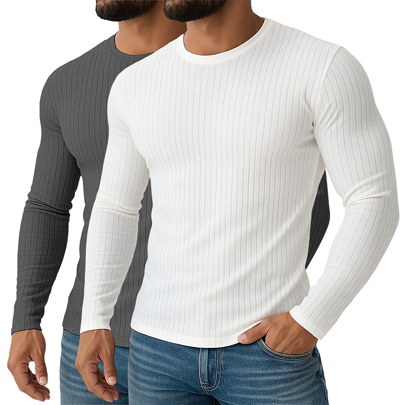 Men's T Shirt Muscle Shirt Ribbed Knit tee Tee Top Long Sleeve Crew Neck Spring Fall All Seasons Solid Color Plain Textured Fashion Designer Basic 2 Piece Multi-pack Knitting Vacation Street Casual