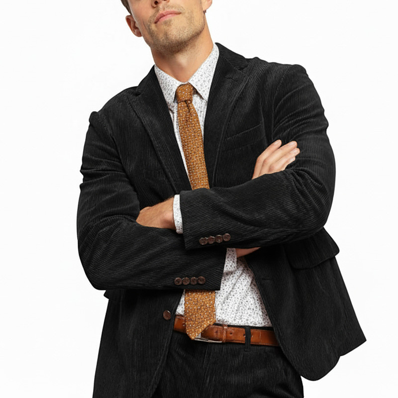 Men's Business Casual Corduroy Suit Notch Lapel Black Burgundy Daily Business Solid Colored Tailored Fit 2 Piece Single Breasted Two-buttons