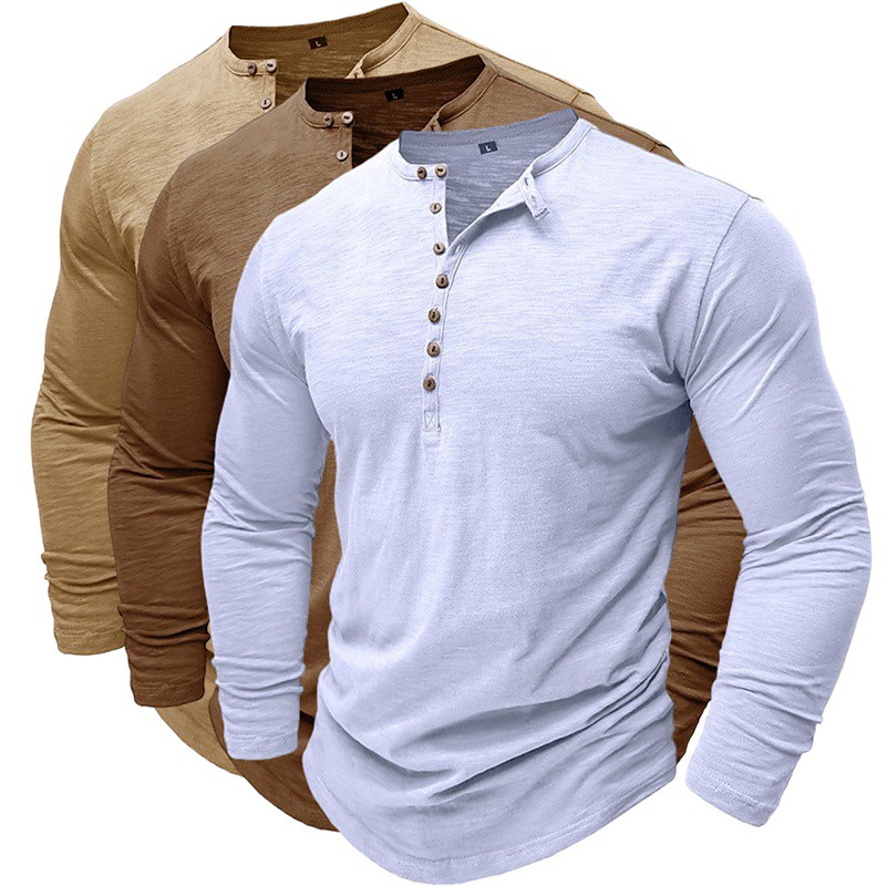3pcs Men's Henley Shirt Tee Top Long Sleeve Solid Color Solid Fashion Daily Casual 3-Piece Multi-pack Henley Outdoor Casual Summer Spring Blue White Black Henley T-Shirt