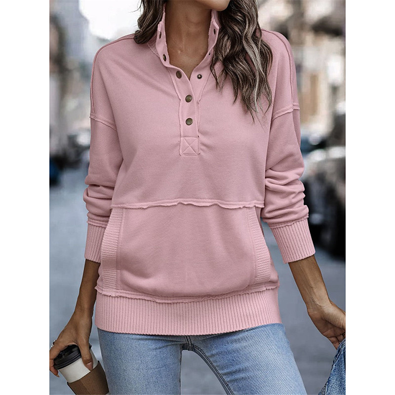 Women's Sweatshirt Casual Plain Street Dailywear Turtleneck Buttons Long Sleeve White Pink Gray Fall Winter