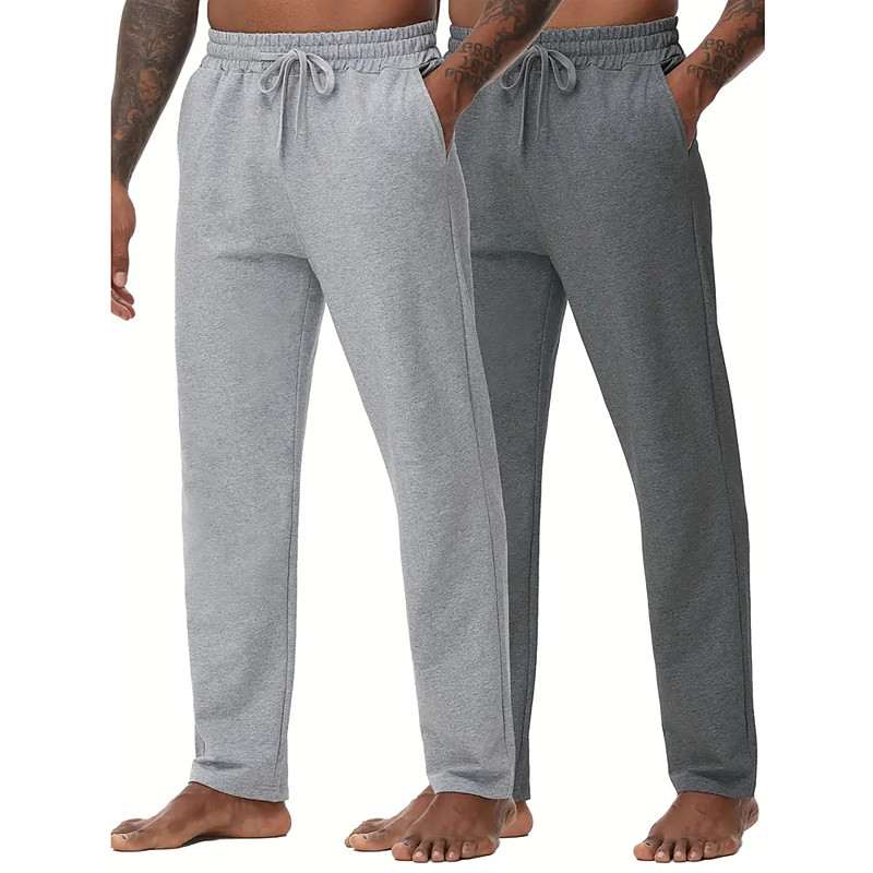 Multi Packs 2pcs Men's blackdark grey Sweatpants Trousers Drawstring Elastic Waist Plain Vacation Daily Wear Polyester Spring