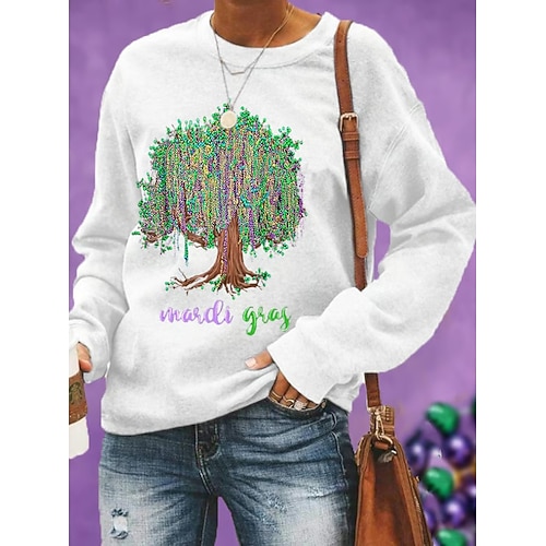 Per donna Felpa Pullover Grafico Classico Casual Manica Lunga Girocollo Top Regolari Abbigliamento da sera Abiti da festa Stampato Nero Bianco Viola Primavera Autunno