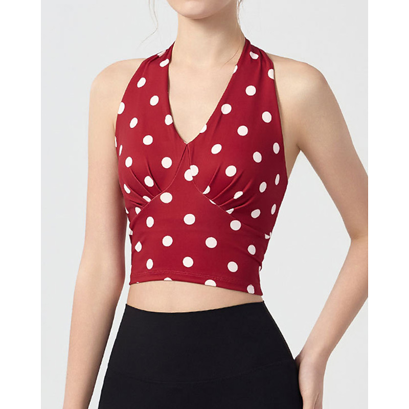 Women's Polka Dot Plaid Checkered Solid Colored Camo / Camouflage Halter Top Sport Top Stylish Print Elastic Sweat-Wicking Breathable Golf Pickleball Yoga Halter Neck Top Winter Light Yellow White