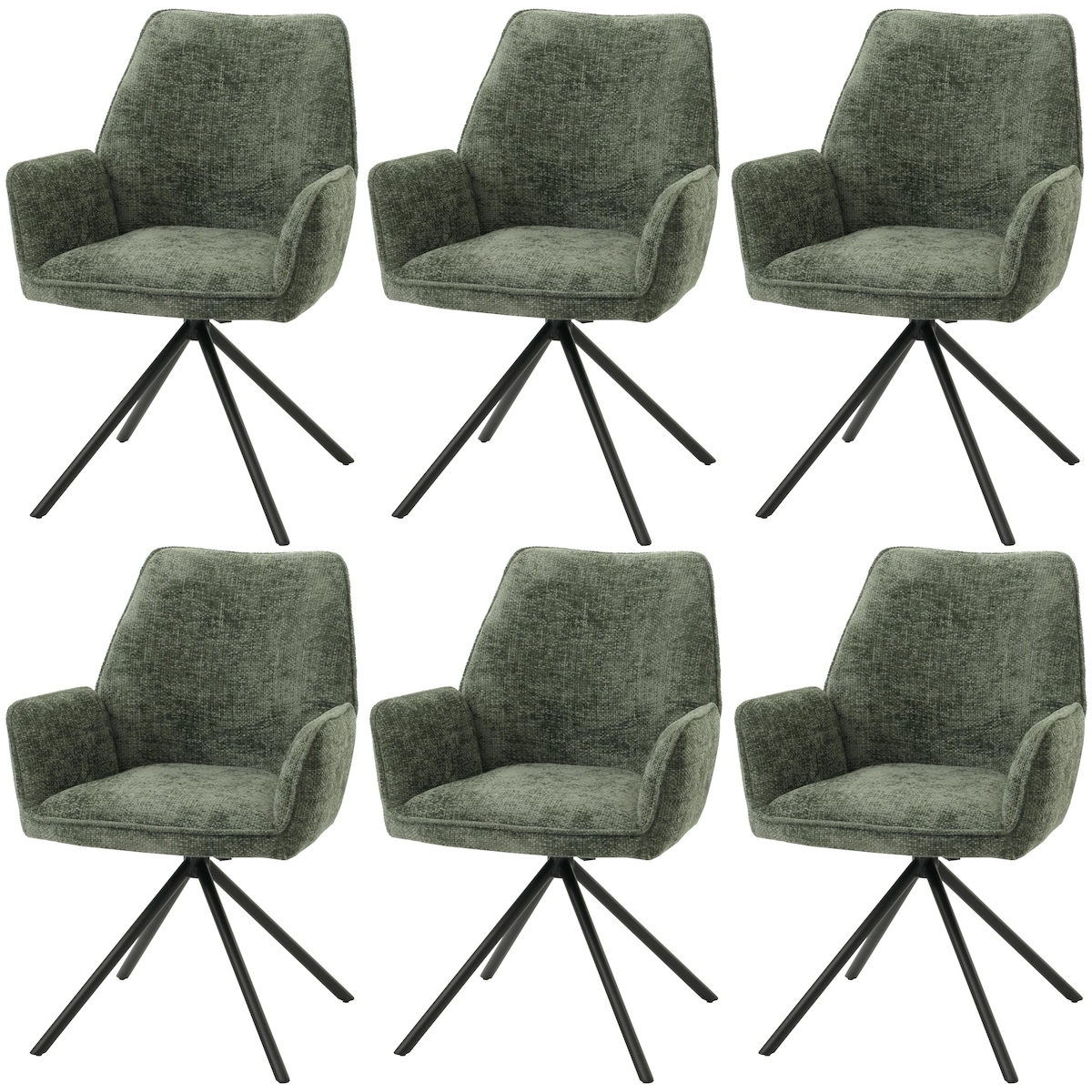 Mendler 6er-Set Esszimmerstuhl HWC-G67, Küchenstuhl Stuhl mit Armlehne, drehbar Auto-Position, Chenille Öko-Tex MVG ~ grün